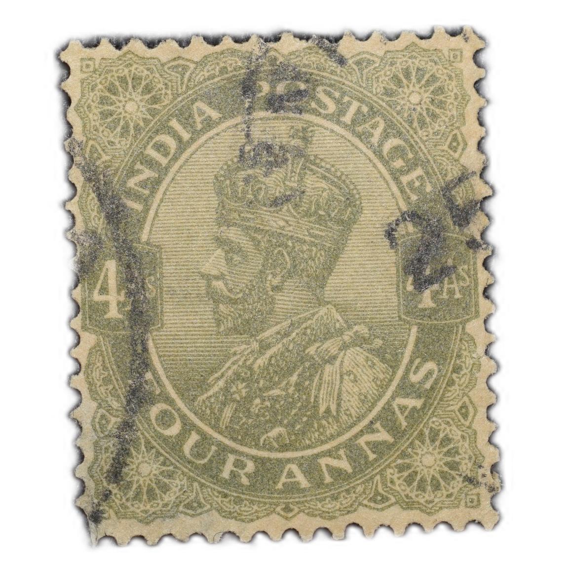 Postal Stamp of George V 4 Annas – Sage Green Colour – Ty.71 Stanely Gibbson – Used as per Image.