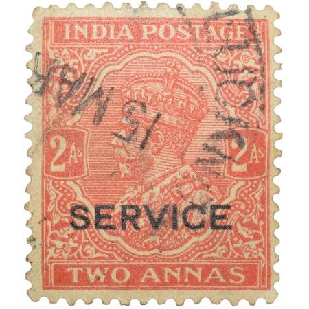 Postal Stamp of George V Orange Colour 2 Annas Over Printed in Black ‘Service’ Used Condition as per