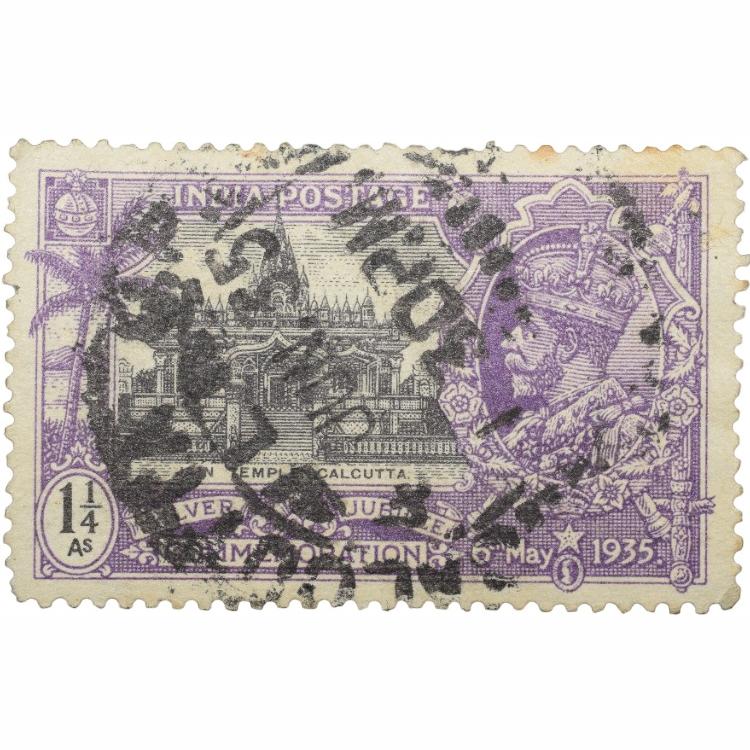 Postal Stamp of George V – Silver Jubliee 6th May 1935 – Jain Temple, Calcutta – 1-1/4 Annas Purple