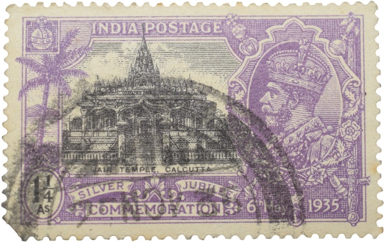 Postal Stamp of George V – Silver Jubliee 6th May 1935 – Jain Temple, Calcutta – 1-1/4 Annas Purple Colour – Used Condition as per Image.