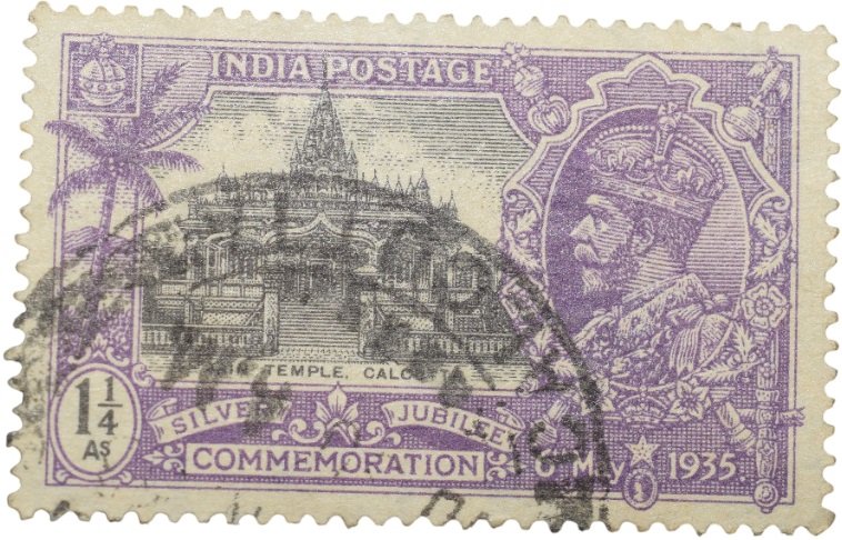 Postal Stamp of George V – Silver Jubliee 6th May 1935 – Jain Temple, Calcutta – 1-1/4 Annas Purple Colour – Used Condition as per Image.