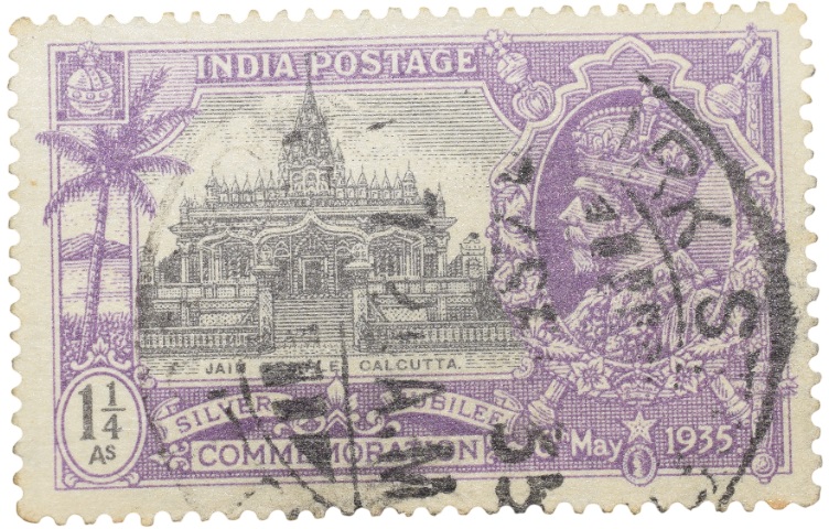 Postal Stamp of George V – Silver Jubliee 6th May 1935 – Jain Temple, Calcutta – 1-1/4 Annas Purple Colour – Used Condition as per Image.