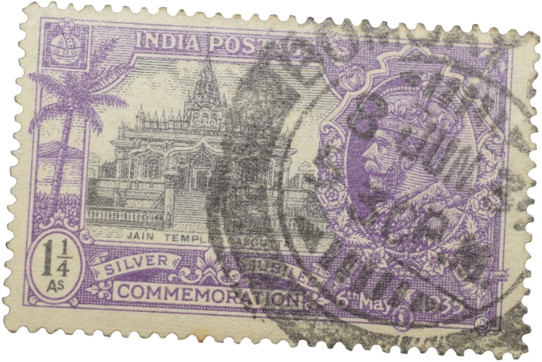 Postal Stamp of George V – Silver Jubliee 6th May 1935 – Jain Temple, Calcutta – 1-1/4 Annas Purple Colour – Used Condition as per Image.