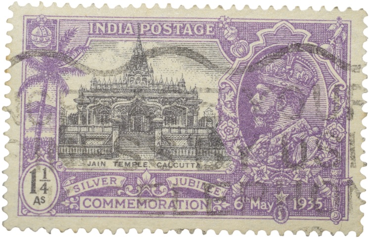 Postal Stamp of George V – Silver Jubliee 6th May 1935 – Jain Temple, Calcutta – 1-1/4 Annas Purple Colour – Used Condition as per Image.