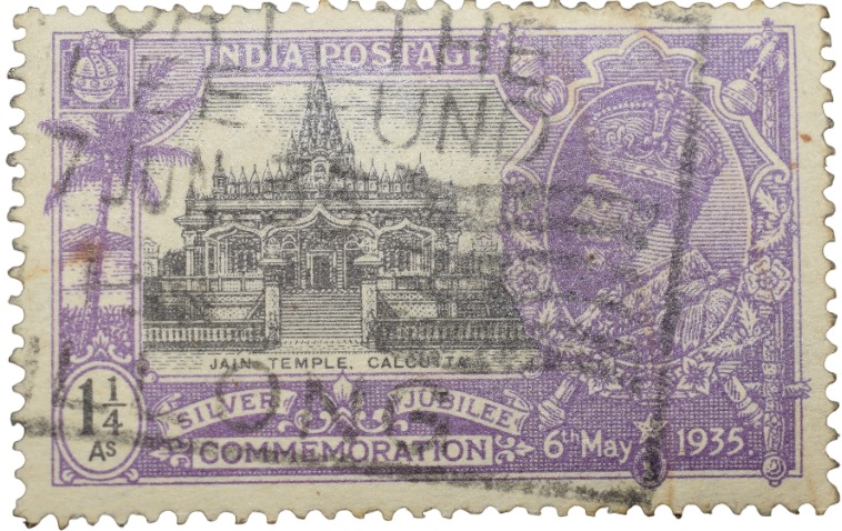 Postal Stamp of George V – Silver Jubliee 6th May 1935 – Jain Temple, Calcutta – 1-1/4 Annas Purple Colour – Used Condition as per Image.
