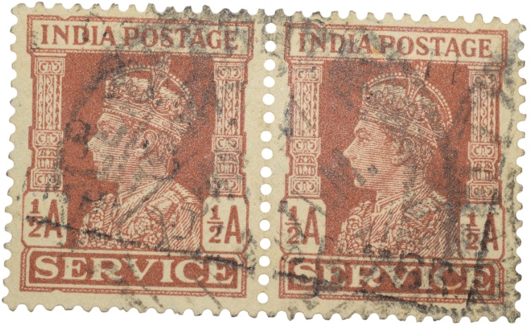 Postal Stamp of George VI 1/2 Anna Brown Colour – Block of 2 Stamps – Used Condition as per image.