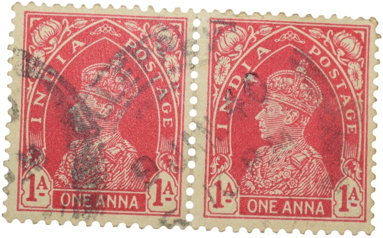 Postal Stamp of George VI 1 Anna Red Colour – Block of 2 Stamps – Used Condition as per Image.