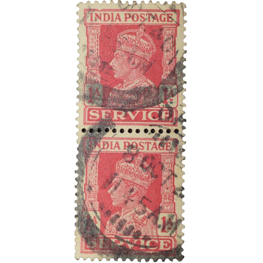 Postal Stamp of George VI 1 Anna Red Colout Block of 2 Stamps – Used Condition as per Image.