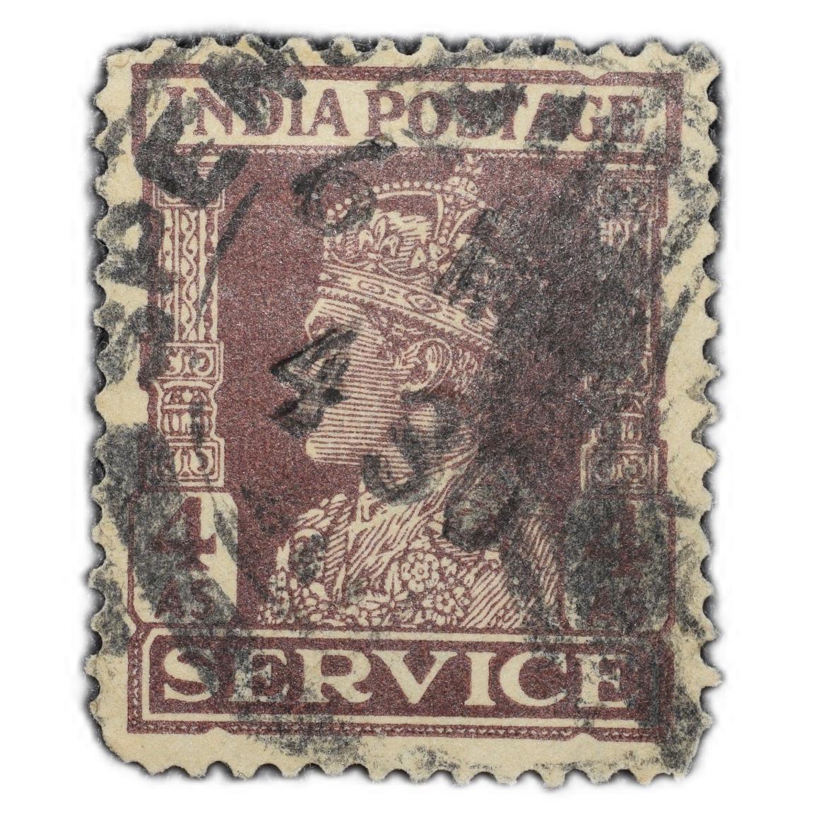 Postal Stamp of George VI 4 Annas Brown & White Colour – Service Issue – Used as per Image.