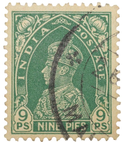 Postal Stamp of George VI 9 Pies Green Colour -Used Condition as per Image.