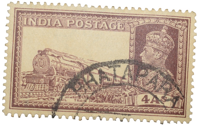 Postal Stamp of George VI Brown Colour 4 Annas ‘MAIL TRAIN’ Issue Used Condition as per Image.
