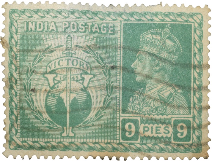 Postal Stamp of George VI – Victory 9 Pies Green Colour Used Condition as per Image.