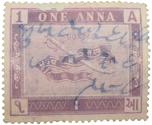 Postal Stamp of Gondal State – Purple 1 Anna – Used Condition as per Image.