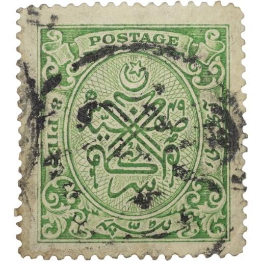 This Postal Stamp of Hyderabad State in green color, denominated at 8 Pies, showcases a piece of history in its fine, heavy USED condition. Issued by the Hyderabad State, this collectible item carries a unique charm for philatelists and history enthusiasts alike. Dating back to a bygone era, this stamp offers a glimpse into the postal system of the Hyderabad State. Its collectible value lies in its historical significance and rarity, making it a prized possession for collectors. The stamp’s weathered appearance adds character and authenticity to its story. While this item does not ship outside of India, it stands as a tangible piece of heritage for those who appreciate the art of stamp collecting.