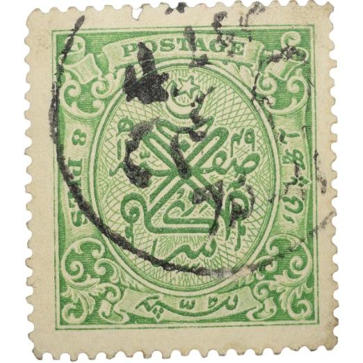 This collectible Postal Stamp of Hyderabad State in green color with a denomination of 8 Pies is a piece of history in fine (heavy used) condition, as depicted in the image. Issued during a significant era, this stamp bears witness to the bygone state of Hyderabad and its postal system. The stamp’s unique attribute lies in its authenticity and historical value, making it a coveted piece for avid collectors and enthusiasts alike. Its worn condition adds to its charm, showcasing its journey through time. While not just a mere stamp, it symbolizes a chapter of the past that appeals to those intrigued by philately and historical artifacts. A must-have for anyone passionate about preserving and appreciating the heritage of Hyderabad State.