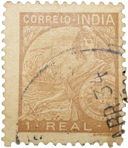 Postal Stamp of India Portugues – 1 Real Brown Colour Used as per Image.