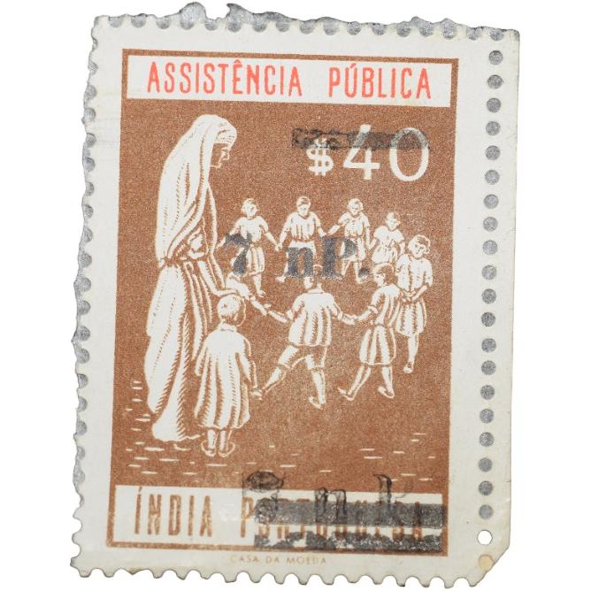 Postal Stamp of India Portugues – Assistencia Publica Cancelled and Over Printed Brown 7 New Paise b