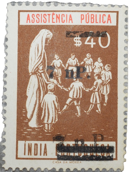 Postal Stamp of India Portugues – Assistencia Publica Cancelled and Over Printed Brown 7 New Paise by GOI, Mint Un-Used as per Image.