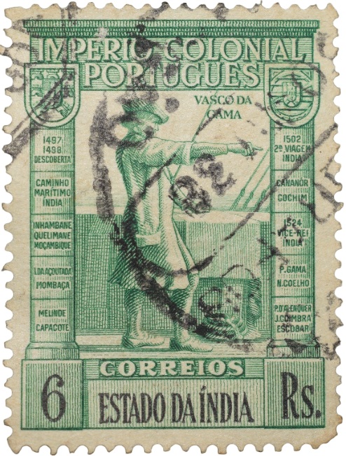 ✅ Unique Postal Stamp of India Portugues – Green 6 Ries with Vasco Da Gama