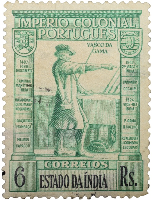 Postal Stamp of India Portugues – Green 6 Ries with Vasco Da Gama – Used as per Image.