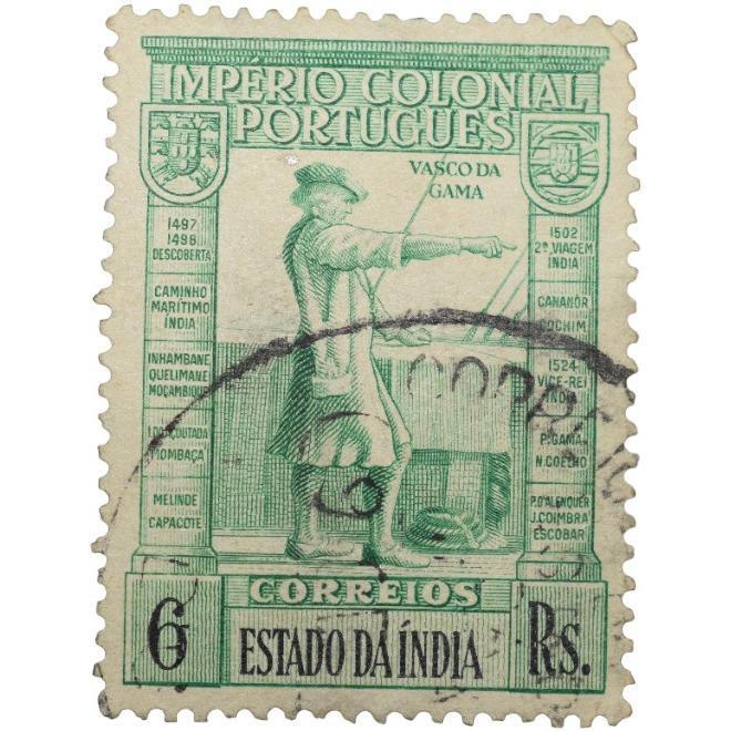 Postal Stamp of India Portugues – Green 6 Ries with Vasco Da Gama – Used as per Image.