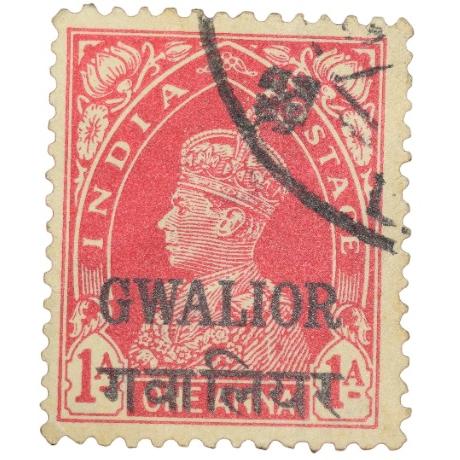 Postal Stamp of Indian Conventional States – Gwalior George VI Red 1 Anna – ‘Gwalior’ Over Printed i