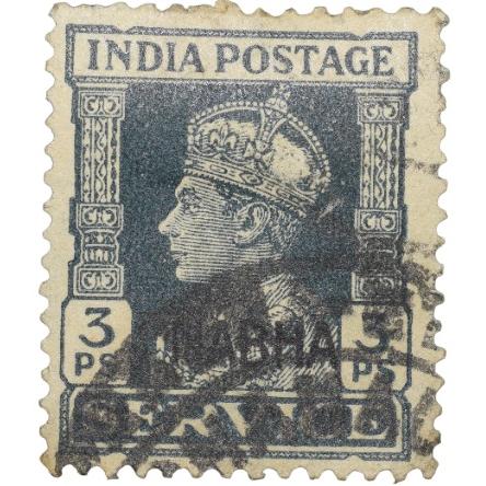 Postal Stamp of Indian Conventional States – Nabha George VI Grey 3 Pies – ‘Nabha’ Over Printed in B