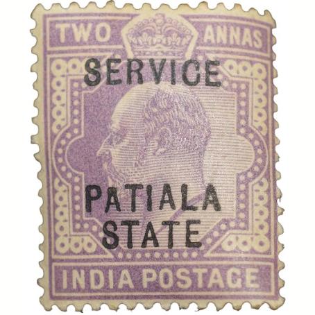 Postal Stamp of Indian Conventional States – Patiala Edward VII Purple 2 Annas – ‘Service Patiala St