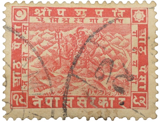 Postal Stamp of Nepal (19th Cen. AD) 8 Paise With Lord Shiva Seated on Himalaya Used Condition as per Image, Rare.