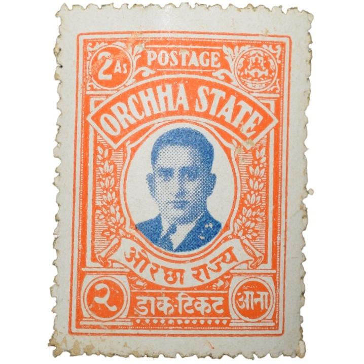 Postal Stamp of Orchha State 2-1/2 Annas Orange-Blue Colour- Mint Un-Used Condition as per Image.