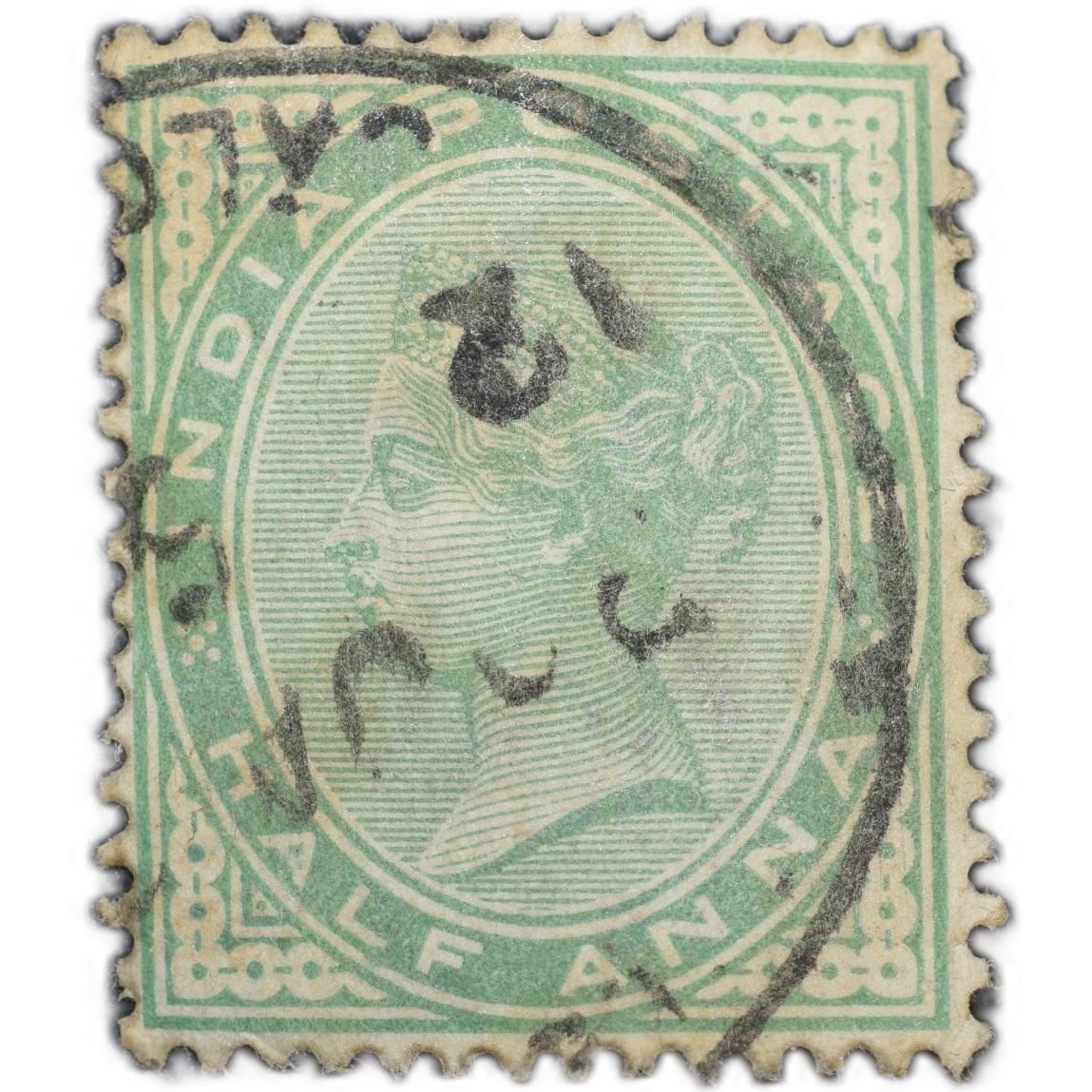 Postal Stamp of Queen Victoria Green 1/2 Anna – Used Condition as per Image.