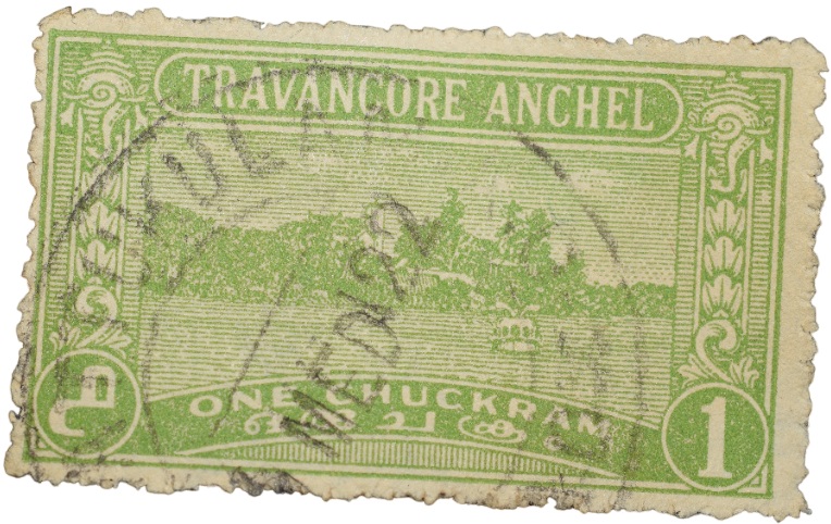 Postal Stamp of Travancore Anchel Green Colour 1 Chukram – Used Condition as per Image