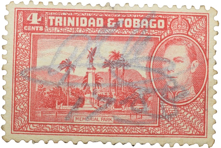 Postal Stamp of Trinidad & Tobago of George VI – 4 Cents Red Colour – Memorial Park Used Condition as per Image.