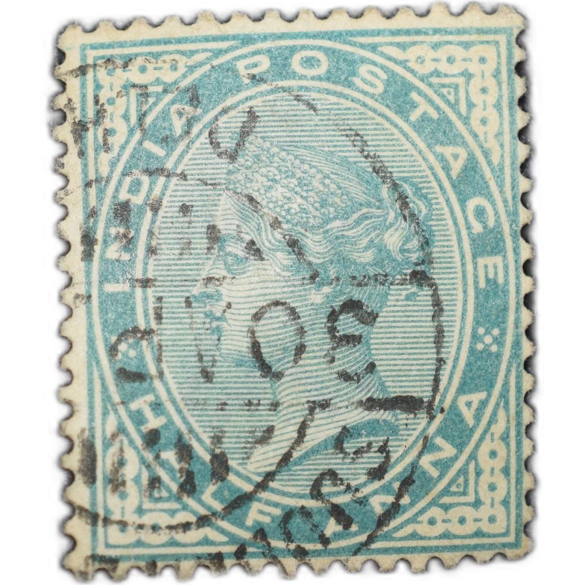 Postal Stamp of Victoria 1/2 Anna – Dull Green Colour – Used as per Image.
