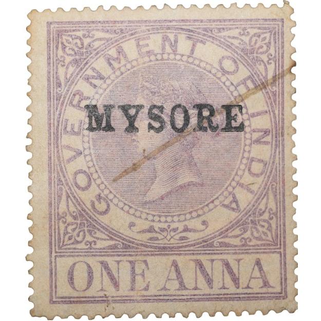Postal Stamp of Victoria 1 Annas Purple Colour – Over Printed in Black ‘Mysore’ – Used Condition as
