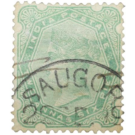 Postal Stamp of Victoria 2 Annas 6 Pies – Green Colour – Sougar(Sagar) Cancellation – Used Condition