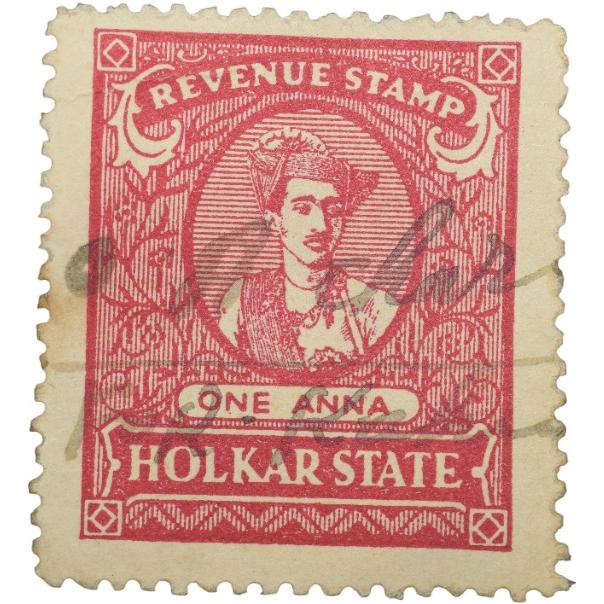 Revenue Stamp of Indore State – Yeshwant Rao Holkar 1 Anna Red – Used Condition as per Image.