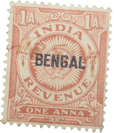 Revenue Stamp of Republic India – Red-Brown 1 Anna Over Printed ‘Bengal’ in Black – Used Condition as per Image.