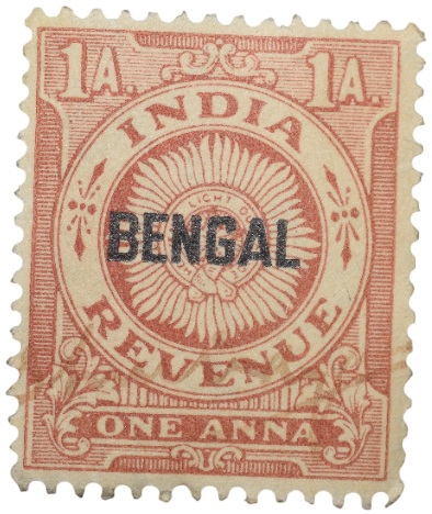 Revenue Stamp of Republic India – Red-Brown 1 Anna Over Printed ‘Bengal’ in Black – Used Condition as per Image.