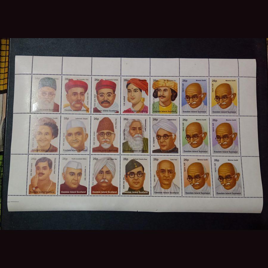 SCOTLAND Old Big STAMPS SHEET On Famous INDIAN FREEDOM FIGHTERS Total 21 Stamps VERY RARE Mint Condition.