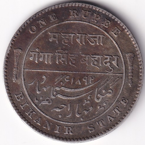 1892 AD Bikanir State Maharaja Ganaga Singh Bahadur Silver EX Rare Silver Coin