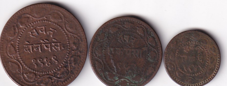 BARODA 1875-1938 AD SAYAJI RAO III (Two Paisa, One Paisa, Pai ) Three Pce Coin Set #I-252