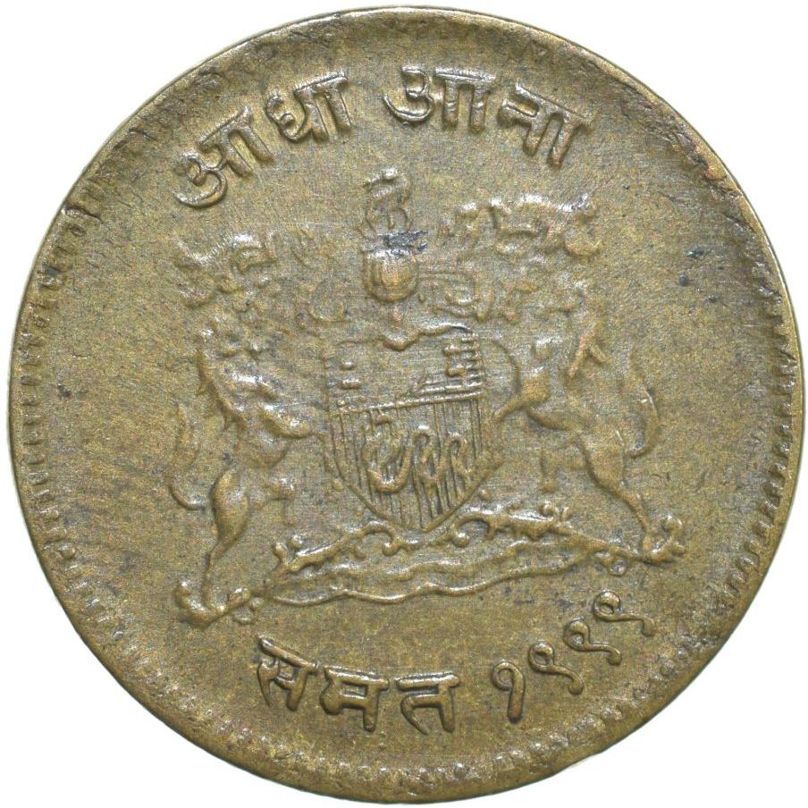 🌟 Historical Brass 1/2 Anna coin from Gwalior State