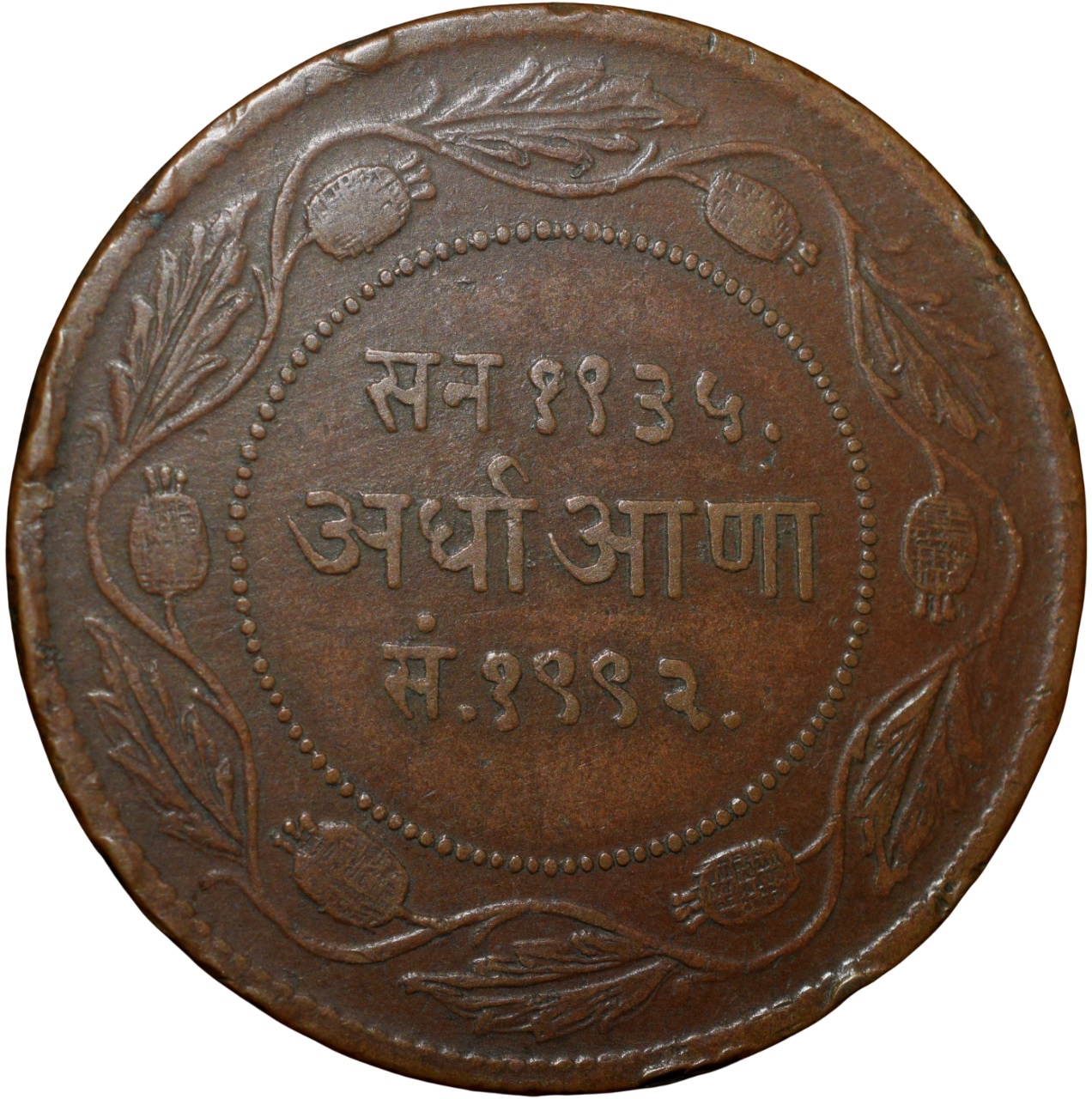 Copper 1/2 Anna Coin of Yeshwant Rao II(AD1926-1948) of Indore State KM # 50