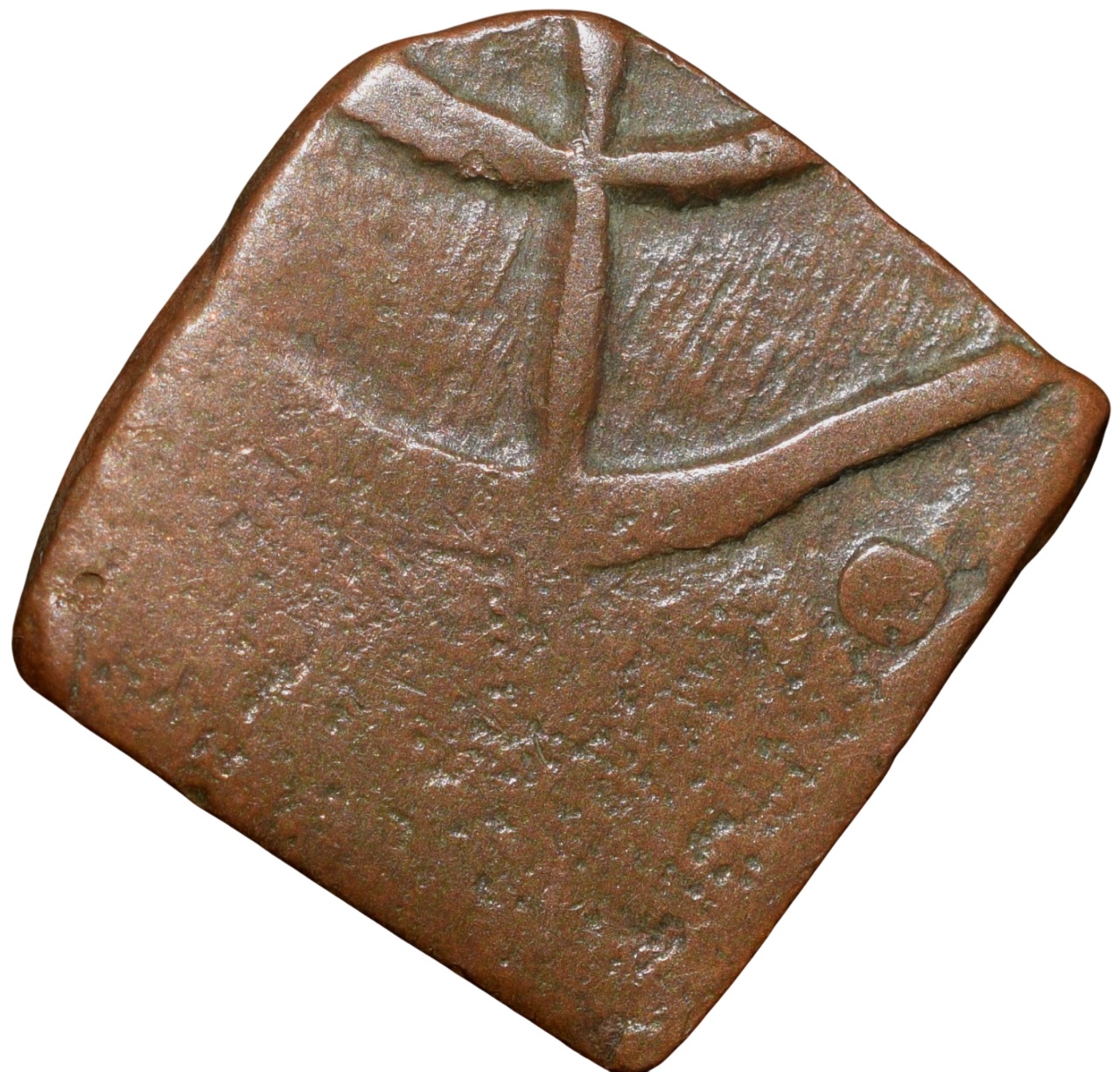 Mewar State, (AD 1810), Copper 1/2 Paisa, Umrada Mint, Obv: Trishul within arc, Rev: Dots & Design, 1.42 Gms, (KM Y23), About Very Fine.