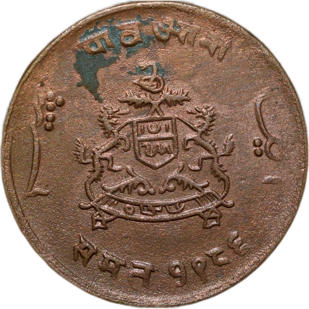 Copper 1/4 Anna of Jivaji Rao(AD1925-1948) of Gwalior State KM # 176.1 Portrait issue