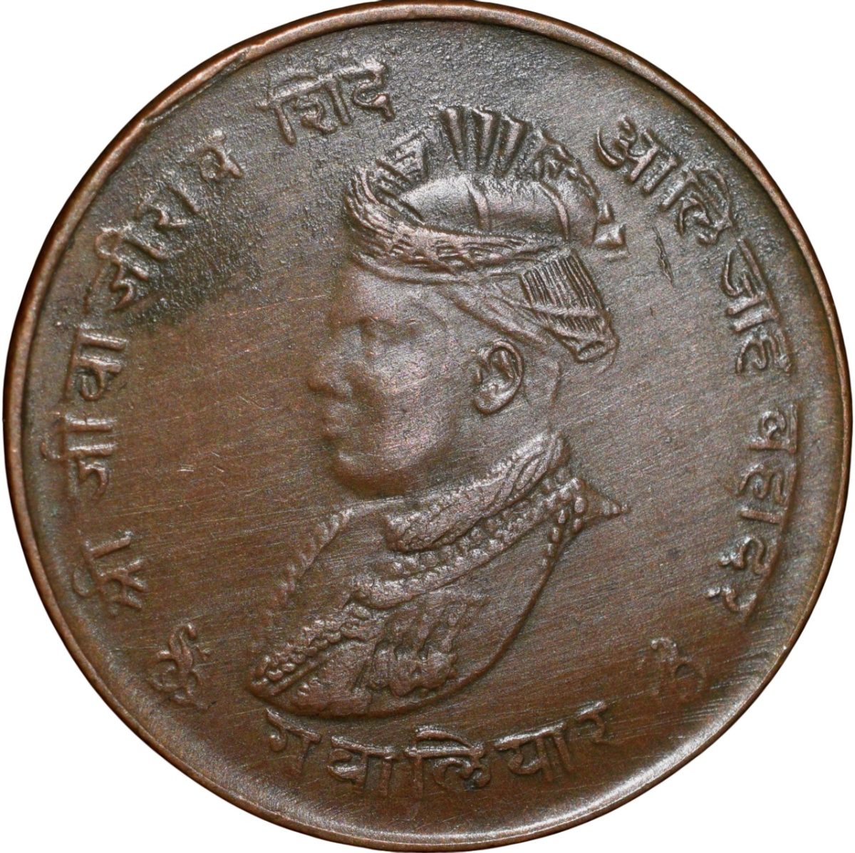 Copper 1/4 Anna of Jivaji Rao(AD1925-1948) of Gwalior State KM178.1