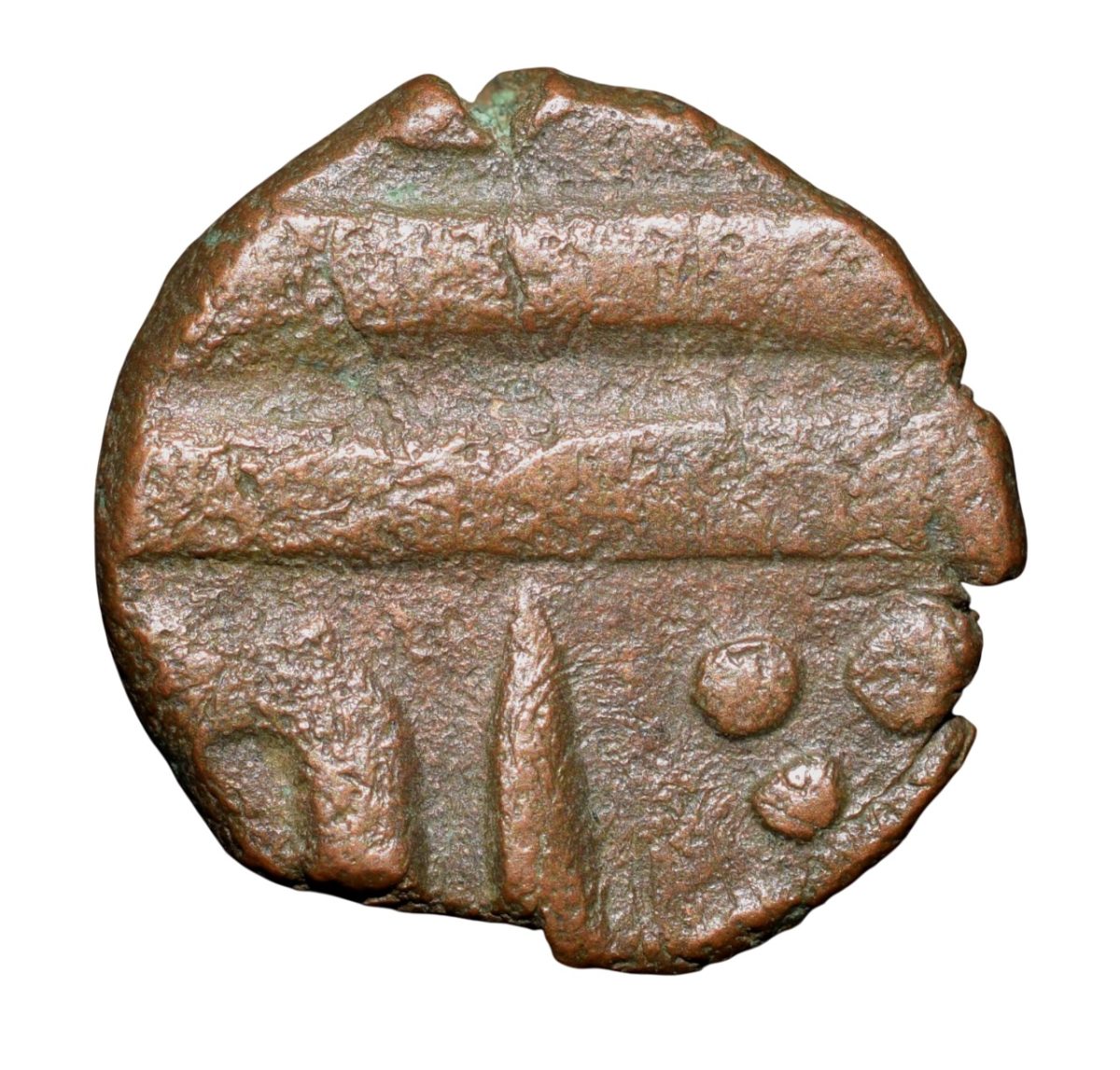 Gwalior State, Jayaji Rao, (AH1259-1304/1843-1886AD), Copper Paisa, Burhanpur Mint, Obv: Persian legends devided by two parellel lines, Rev: Mint name in persian, 2.74 Gms, About Very Fine, Rare Unlisted fractional denomination.
