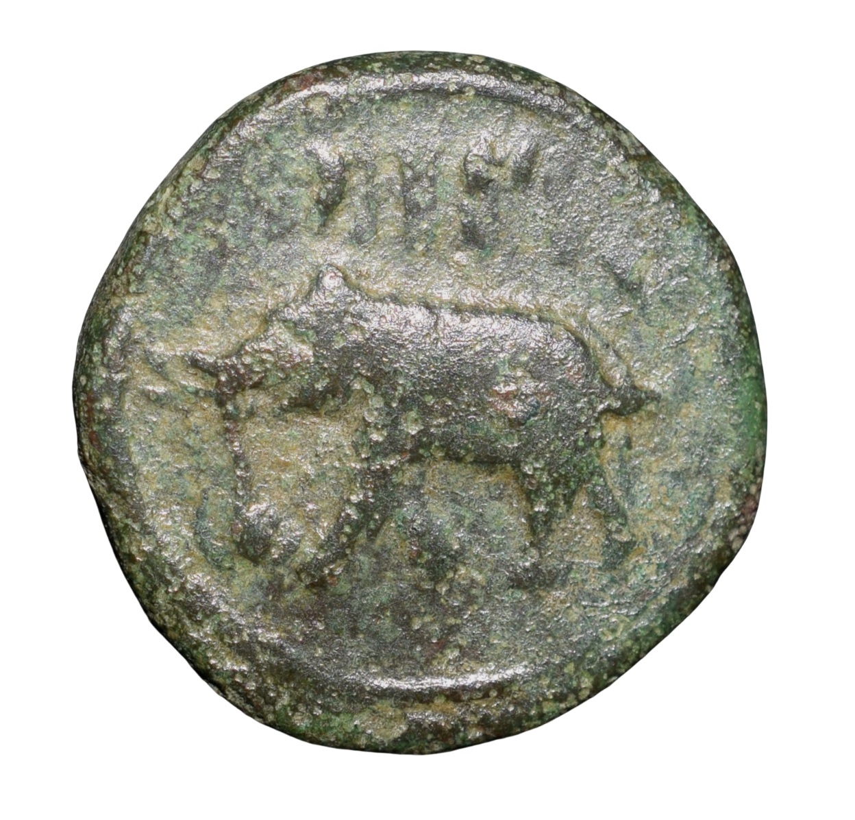 Mysore Kingdom, Tipu Sultan, (AM1215-1227/1787-1799AD), Zafarabad Mint, Copper 1/4 Paisa (Akhtar), Obv: Date in Persian Numeral with Elephant walking left, Rev: Mint Zafarabad, 2.94 Gms, (KM141), Extremely Fine, Extremely Rare.