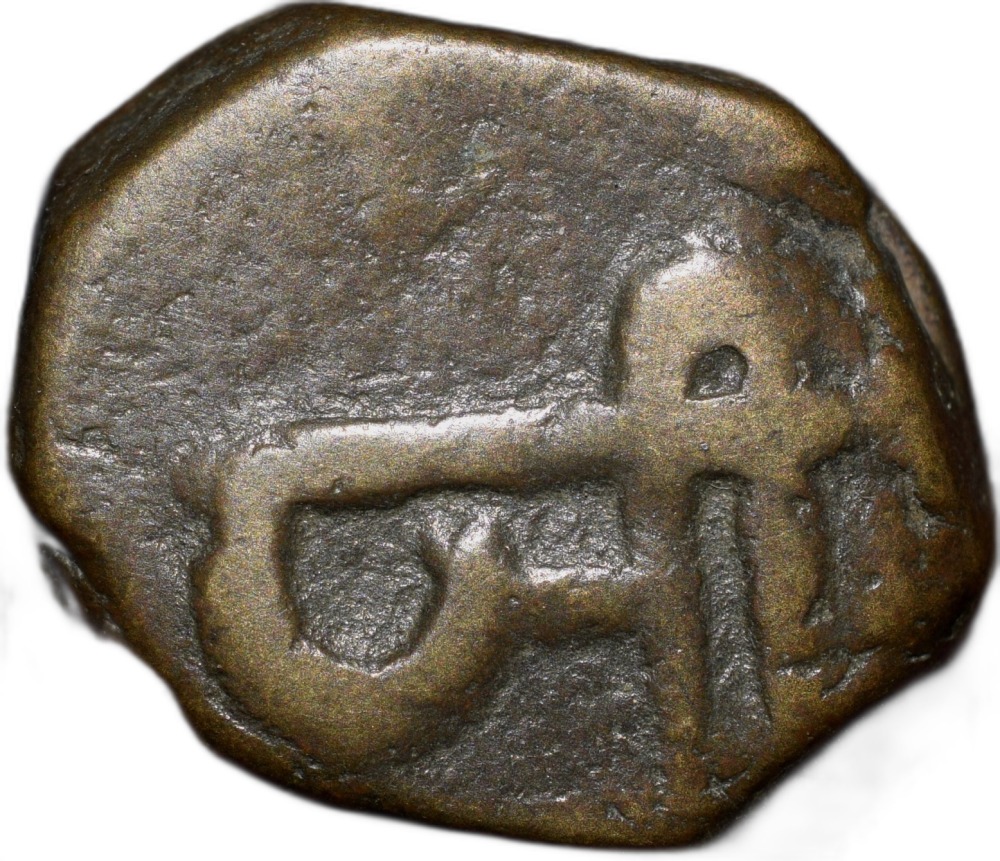 Radhanpur State, Bismilla Khan, (AD 1874-1895), Copper/Bronze Paisa, Obv: Nagari character “Ji”, Rev: Uniface, 8.42 Gms, 14.09 X 18.82 mm, (KM16 ), Extremely Fine, Scarce.